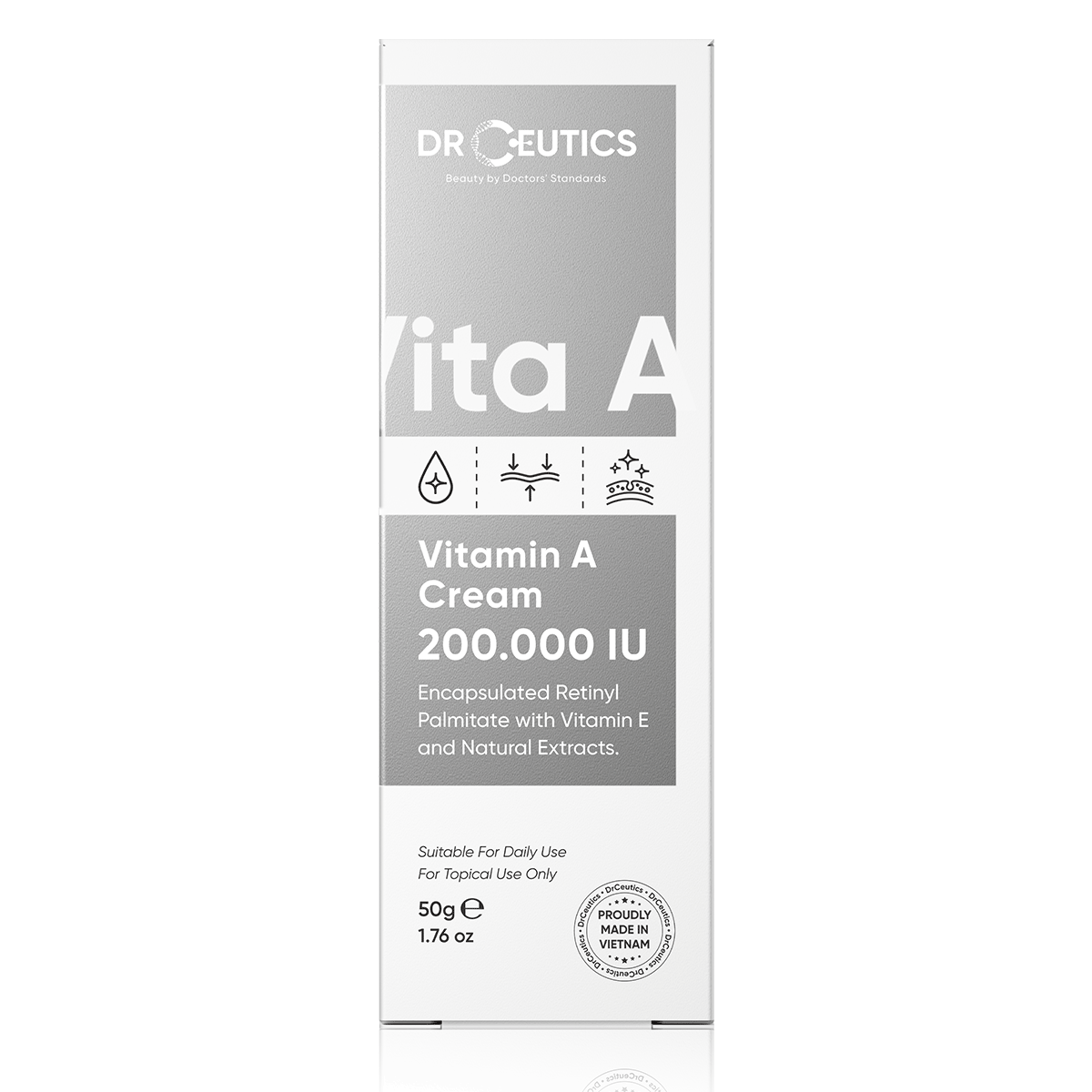 Kem dưỡng chứa retinyl palmitate, cùng các chiết xuất thiên nhiên và vitamin E (tocopherol) giúp làm sáng da, cải thiện tình trạng da chảy xệ, cải thiện các nếp nhăn li ti, cân bằng dầu nhờn, giúp da căng mướt, mịn màng.VITAMIN A CREAM 200.000 IU